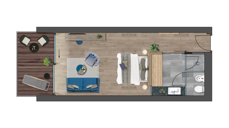 50 m² (y compris la loggia), pour 2-4 personnes.