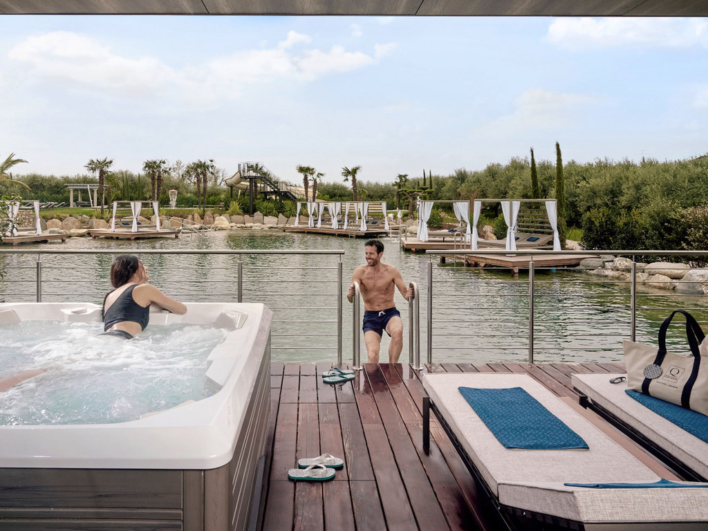 Un hotel sul Lago di Garda con jacuzzi in camera che risveglia i sensi, grazie alle sue suite con idromassaggio e accesso al laghetto naturale. La brezza del lago porta con sé il profumo degli agrumi, i rigogliosi alberi di ulivo adornano le rive del lago, poco distante da voi, e il sole accarezza il paesaggio con i suoi raggi. Quanto è bello il dolce far niente qui nel nostro hotel sul Lago di Garda con jacuzzi in camera e vista sul giardino, il rifugio ideale per rilassarsi. Benvenuti nelle suite al lago!